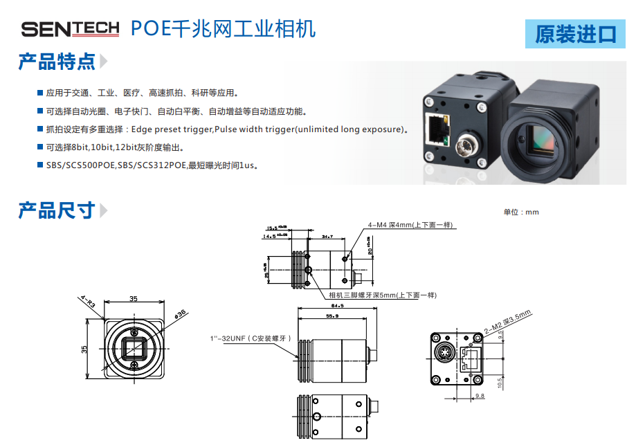 SENTECH POE千兆網(wǎng)工業(yè)相機(jī)